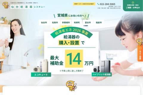 ツネマツガス株式会社様が運営する「仙台給湯器レスキュー」にて、「給湯省エネ2026補助金」に特化したランディングページを制作しました。
