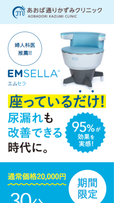 仙台市青葉区の「あおば通りかずみクリニック」様でお取り扱いする「EMSELLA(エムセラ)」のランディングページ(LP)を制作いたしました。